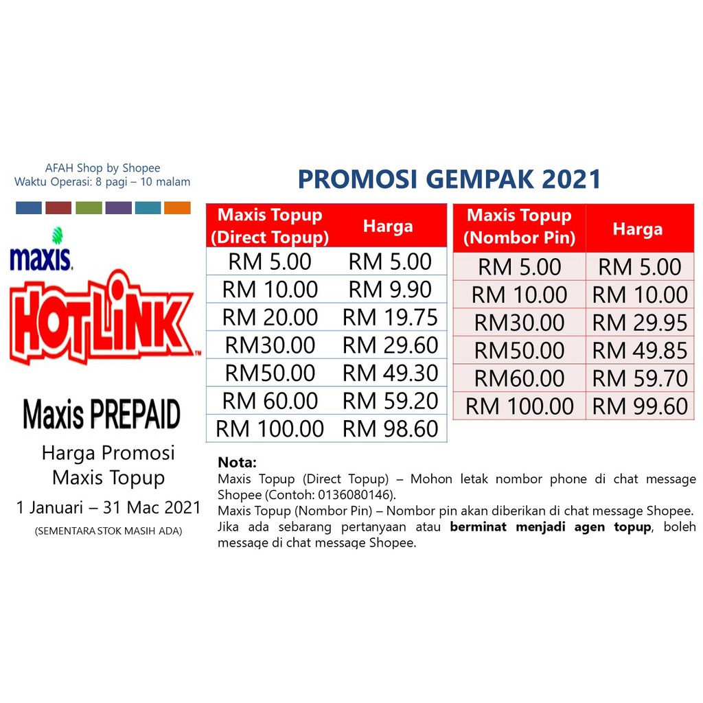 Maxis Hotlink Prepaid Share A Topup Validity For 5 Days Rm 30 Rm50 Rm100 Shopee Malaysia